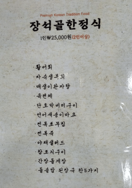 저희는 장석골한정식으로 주문했습니다