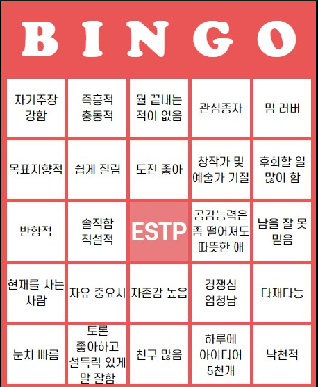 목차 5위 ESTP 4위 ESTJ 3위 ENTJ 2위 ISTP 1위 INTP 안녕하세요 최도그 입니다 라떼만해도 혈액형 묻는게 다반사였지만 요즈음 MBTI 가 꽤 중요하게 생각하시는 분들이 많습니다 사람과 사람이 만날 때 MBTI는 꼭 물어보는 질문 중 하나 인데요 오늘은 가장 연애를 못하는 MBTI순위 TOP5 입니다 5위 : ESTP 적응력이 강하고 문제 해결능력이 뛰어난 ESTP ! 무겁지 않고 즐거운 연애를 선호합니다 자유 분방하고 활동적이라 리더십도 있고 주변 사람들에게 관심이 많아서 남사친,여사친 문제로 다툴 수 있으니 주의해야 합니다 그렇기 때문에 지나치게 구속하지 않고 다양한 데이트를 즐기며 취미를 공유할 수 있는 사람을 만나는 걸 추천드립니다^^ 4위 : ESTJ 겉으로는 조금 딱딱해 보..
